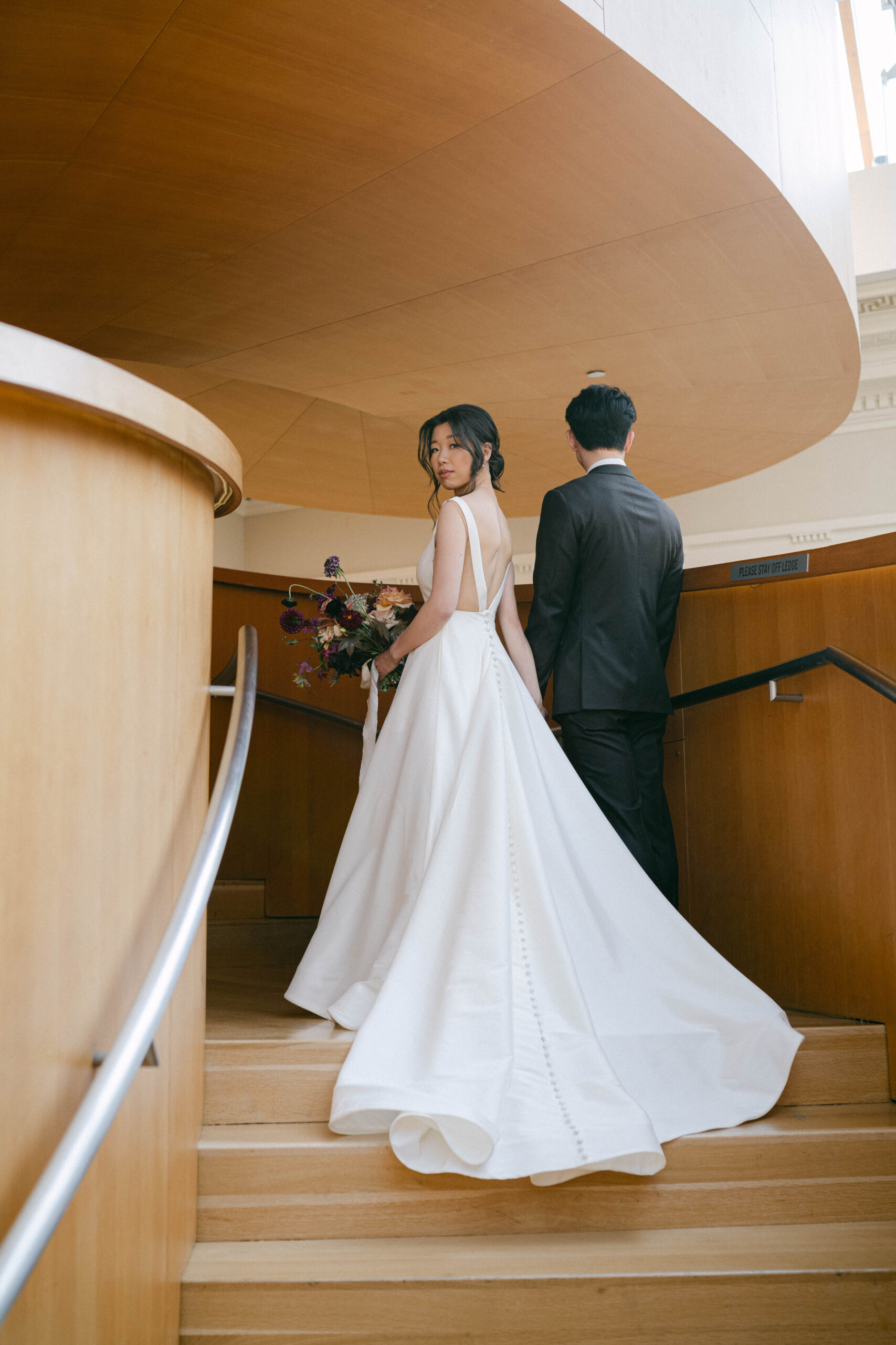 Dramatic formations of blooms beautifully set the tone for Lena & Will’s modern, elegantly refined wedding in the Art Gallery of Ontario (AGO). Embodying a contemporary design and filled with unique spaces, the gallery is truly an outstanding choice for celebrating the special day of your life. Featuring a stunning blend of rust tones with neutral colour palettes, the venue served as the perfect canvas for Lena & Will to realize their vision, and I was honoured to be part of it as their wedding coordinator.