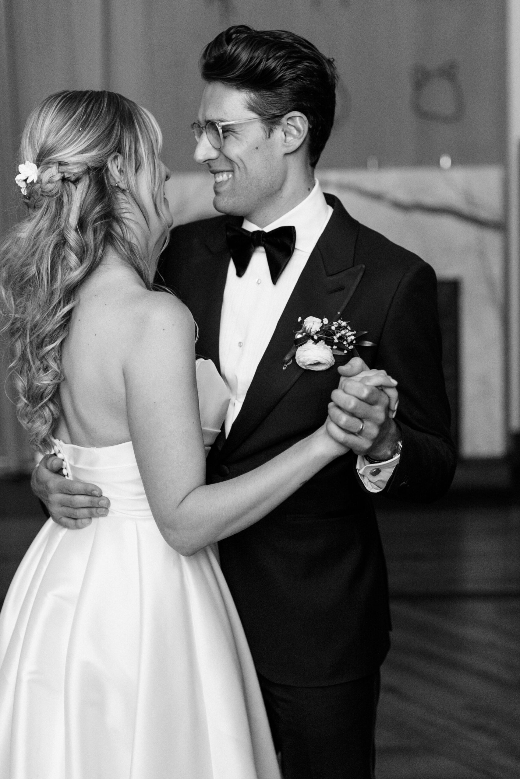 The ceremony and reception were held in Sala da Pranzo, a stunning private dining room on the second floor of Terroni. Adorned with sparkling chandeliers and working fireplaces, the space offered both intimacy and elegance. Guests then enjoyed cocktails in Il Covo, the third-floor lounge featuring a dedicated bar, rich wood paneling, and plush leather seating – an ideal setting for relaxed mingling.